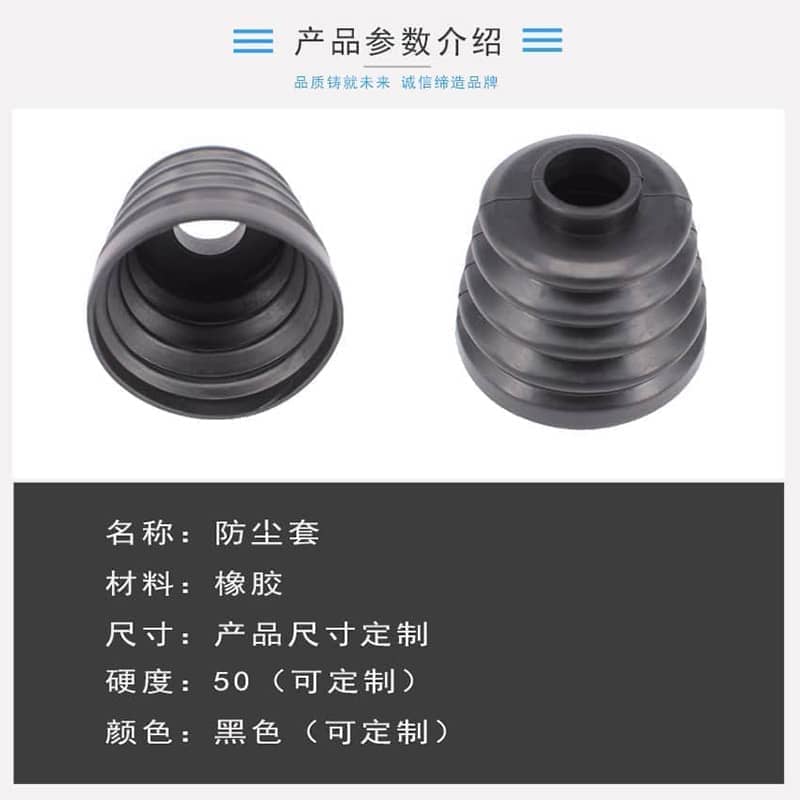 用途:橡胶防尘套防尘罩采用特殊橡胶料配方,弹性好,挤压后变形极小,耐磨损,耐腐蚀,耐老化,耐冷耐热,使用寿命长,形状、尺寸大小、硬度、颜色均可定制。